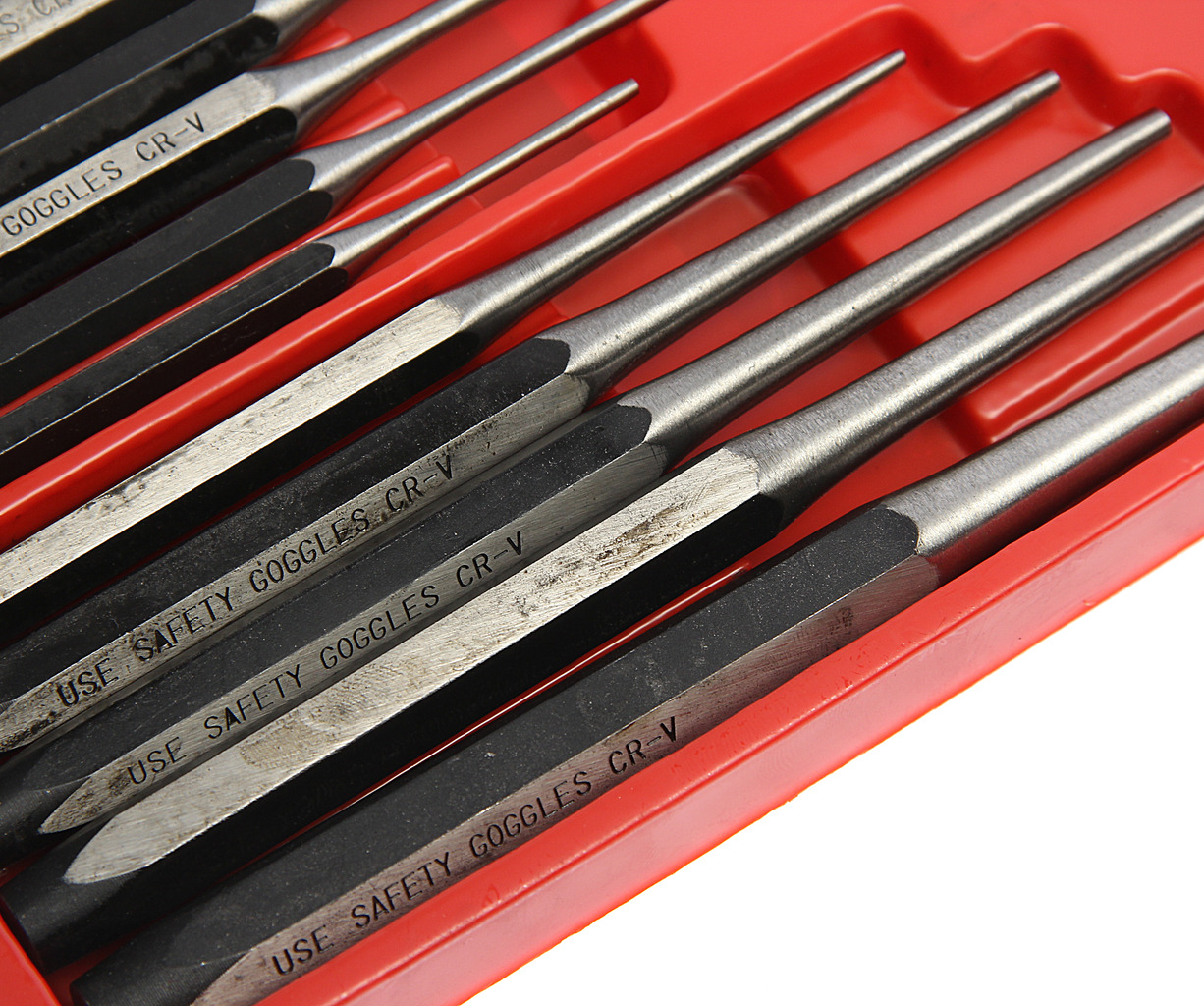 • Инструменты изготовлены из закалённой хром-ванадиевой стали. В комплекте: Бородок: 2, 3, 4, 5, 6 мм. — 5 шт. Выколотка: 2, 3, 4, 5, 6 мм. — 5 шт. Зубило: 10, 13, 15 мм. — 3 шт. Кернер: №3, 4. — 2 шт. Долото: 1 шт. Общее количество предметов: 16 шт. Количество в оптовой упаковке: 20 шт. Габаритные размеры: 210x190x20 мм. (ДxШxВ) Вес: 1121 гр.