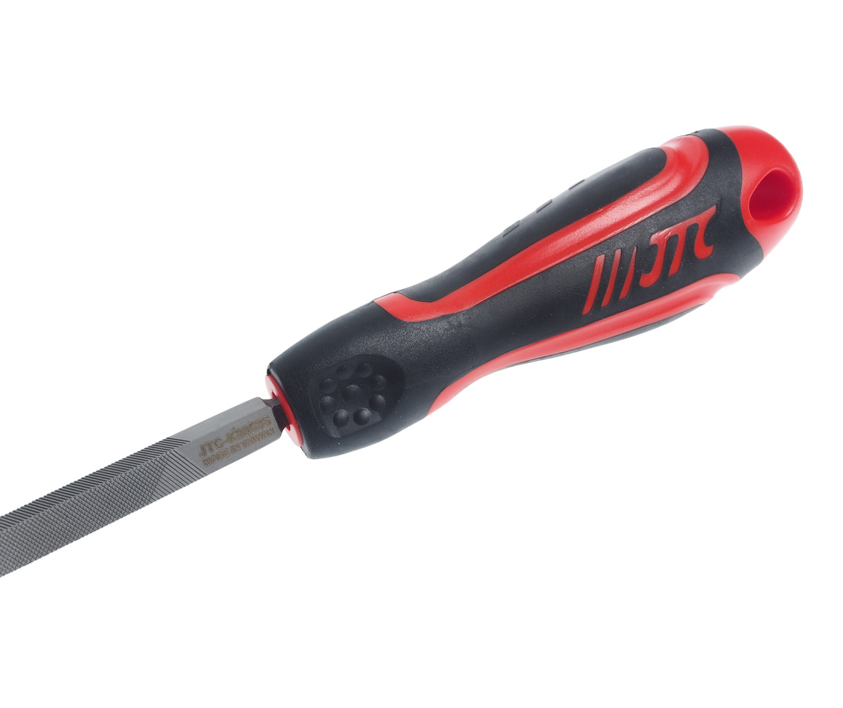 • Квадратный напильник JTC-K8053S со средними зубьями имеет длину в 200 мм и прорезиненную анатомическую рукоятку с отверстием для подвешивания инструмента.