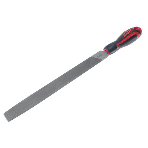 • Напильник предназначен для обработки изделий из разных материалов, для придания им нужных форм и размеров, а также для стачивания всех неровностей и зачистки поверхности до требуемых норм. Применяется в слесарных мастерских, автосервисах, на производствах металлоконструкций, в строительстве и т.д. Полотно напильника изготовлено из высококачественной стали и подвергнуто дополнительным обработкам. Твердость составляет 60 HRC. Плоская форма полотна (прямоугольное в сечении) с небольшим сужением к кончику используется для опиливания наружных или внутренних плоских поверхностей, а также пропиливания шлицев и канавок. Эргономичная двухкомпонентная рукоятка (PP + TPV) разработана для передачи повышенного усилия на обрабатываемую деталь, не скользит в руке, обладает стойкостью к маслам, бензину и прочим химическим веществам. Отверстие в рукоятке позволяет подвесить напильник на рабочем месте.