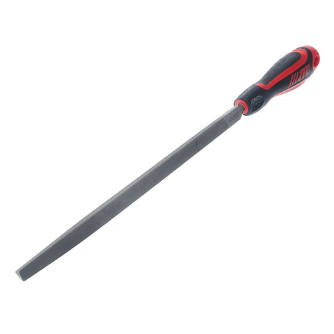 • Напильник предназначен для обработки изделий из разных материалов, для придания им нужных форм и размеров, а также для стачивания всех неровностей и зачистки поверхности до требуемых норм. Применяется в слесарных мастерских, автосервисах, на производствах металлоконструкций, в строительстве и т.д. Полотно напильника изготовлено из высококачественной стали и подвергнуто дополнительным обработкам. Твердость составляет 60 HRC. Эргономичная двухкомпонентная рукоятка (PP + TPV) разработана для передачи повышенного усилия на обрабатываемую деталь, не скользит в руке, обладает стойкостью к маслам, бензину и прочим химическим веществам. Отверстие в рукоятке позволяет подвесить напильник на рабочем месте.