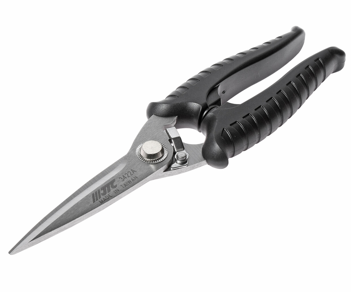 Ножницы имеют прочные острые лезвия и оснащены рукояткой, предотвращающей скольжение руки.