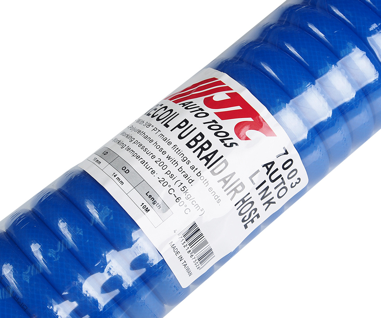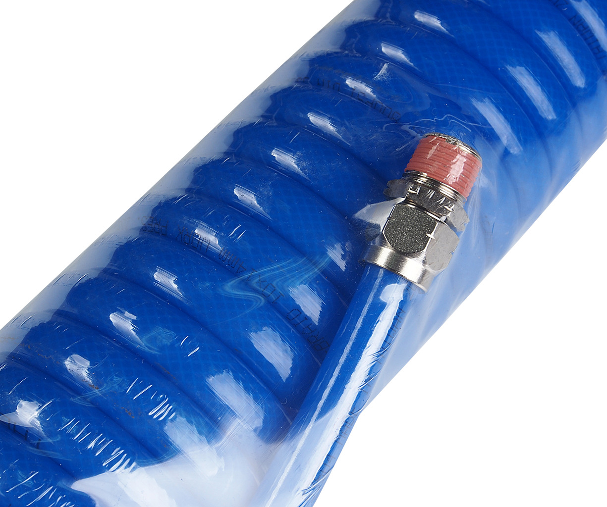 • Шланг спиральный воздушный С наружным фитингом 3/8" PT на обоих концах. Полиуретановый шланг с оплеткой. Рабочее давление 200 фунтов на квадратный дюйм (15 кг/см²) Рабочая температура: -20°C - 60°C I. D: 10 мм Наружный диаметр: 14 мм Длина: 10 м