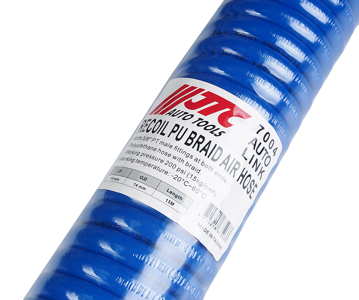 • Шланг спиральный воздушный С наружным фитингом 3/8" PT на обоих концах. Полиуретановый шланг с оплеткой. Рабочее давление 200 фунтов на квадратный дюйм (15 кг/см²) Рабочая температура: -20°C - 60°C I. D: 10 мм Наружный диаметр: 14 мм Длина: 15 м