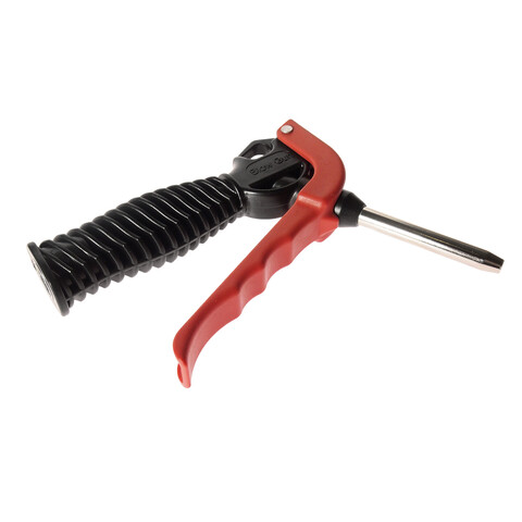С эргономичной выжимной рукояткой для экономии усилия и металлическим переходником в месте подключения воздушного штуцера.