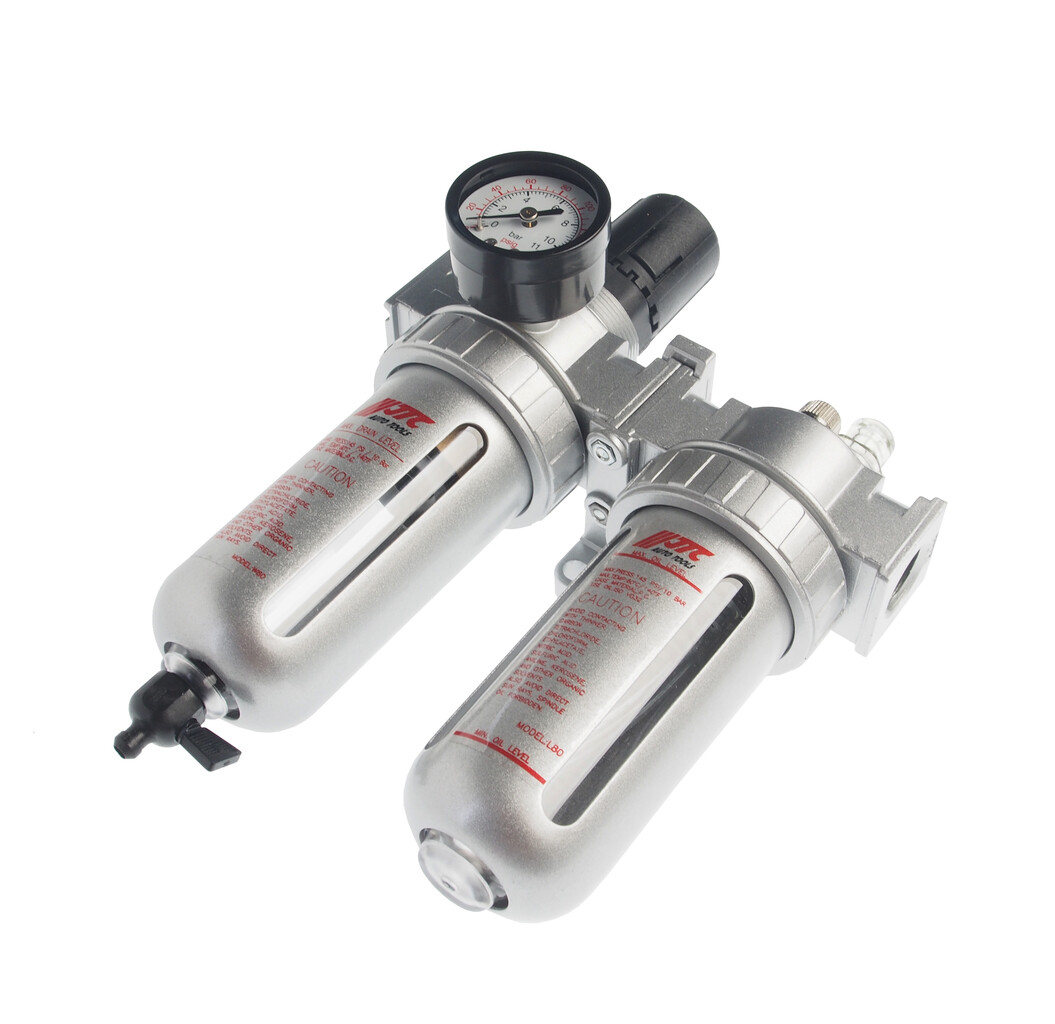 Блок подготовки воздуха (лубрикатор,осушитель) 1/2” пластик. переключ. 150PSI 3000л/мин. 125мл JTC
