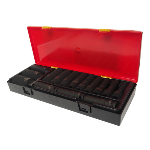 Набор головок торцевых 1/2" 12-гранных 10-32мм ударных глубоких 15 предметов в кейсе JTC