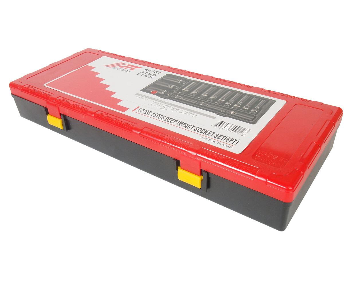 Набор головок торцевых 1/2" 6-ти гранных 10-32мм ударных глубоких 15 предметов в кейсе JTC