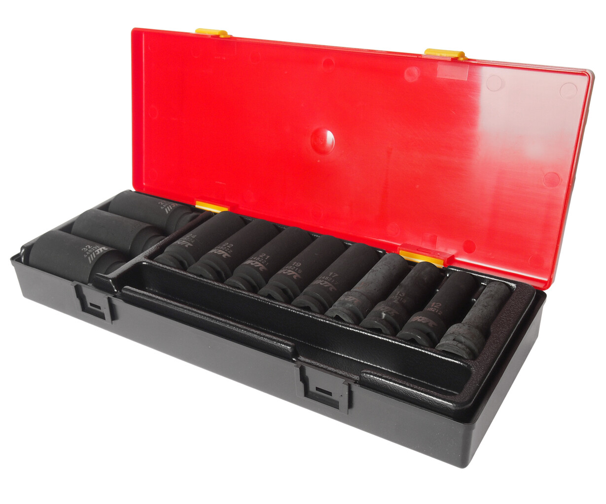Набор головок торцевых 1/2" 6-ти гранных 10-32мм ударных глубоких 12 предметов в кейсе JTC