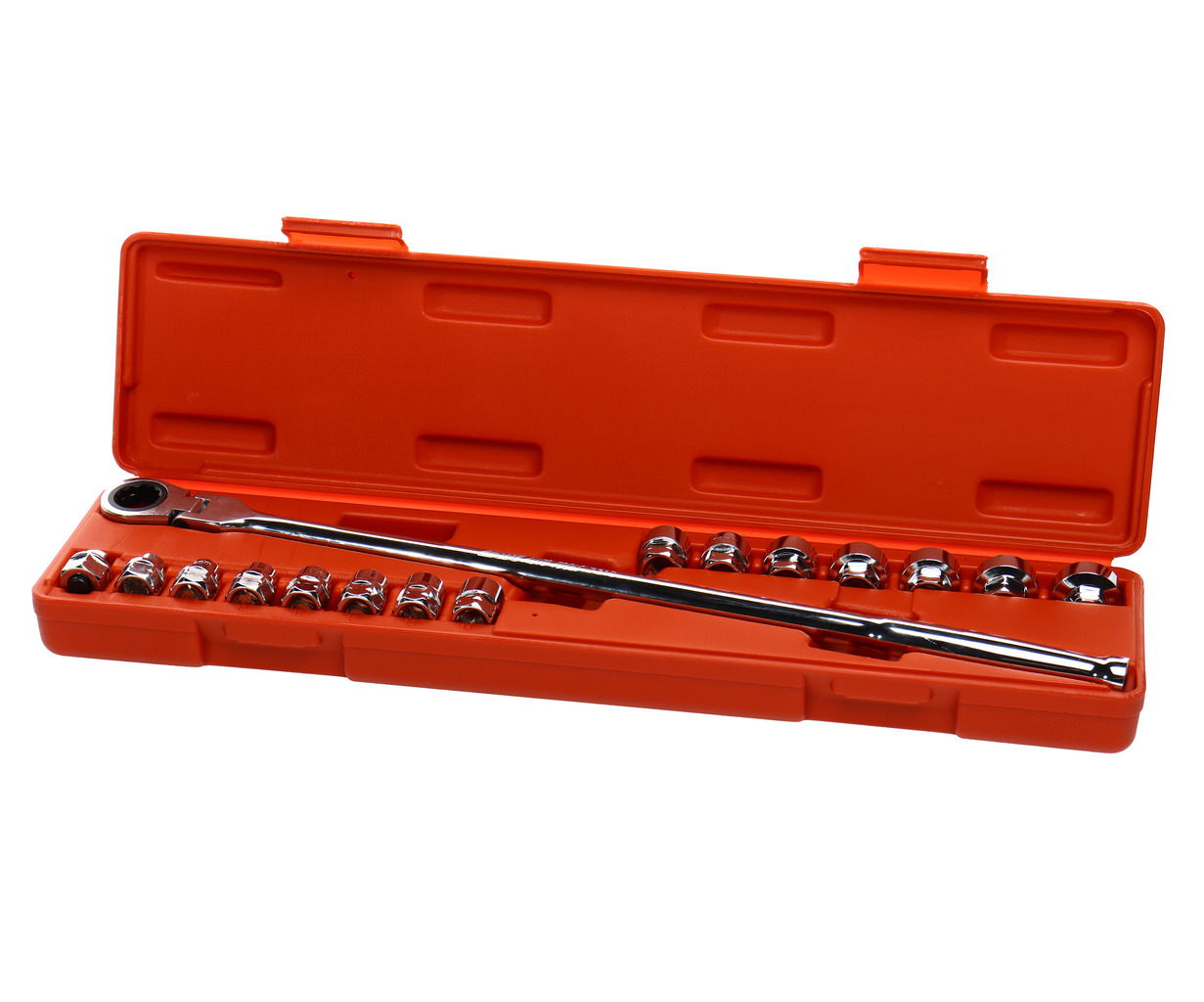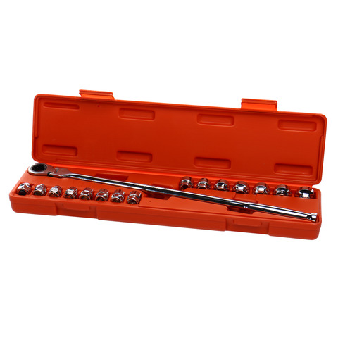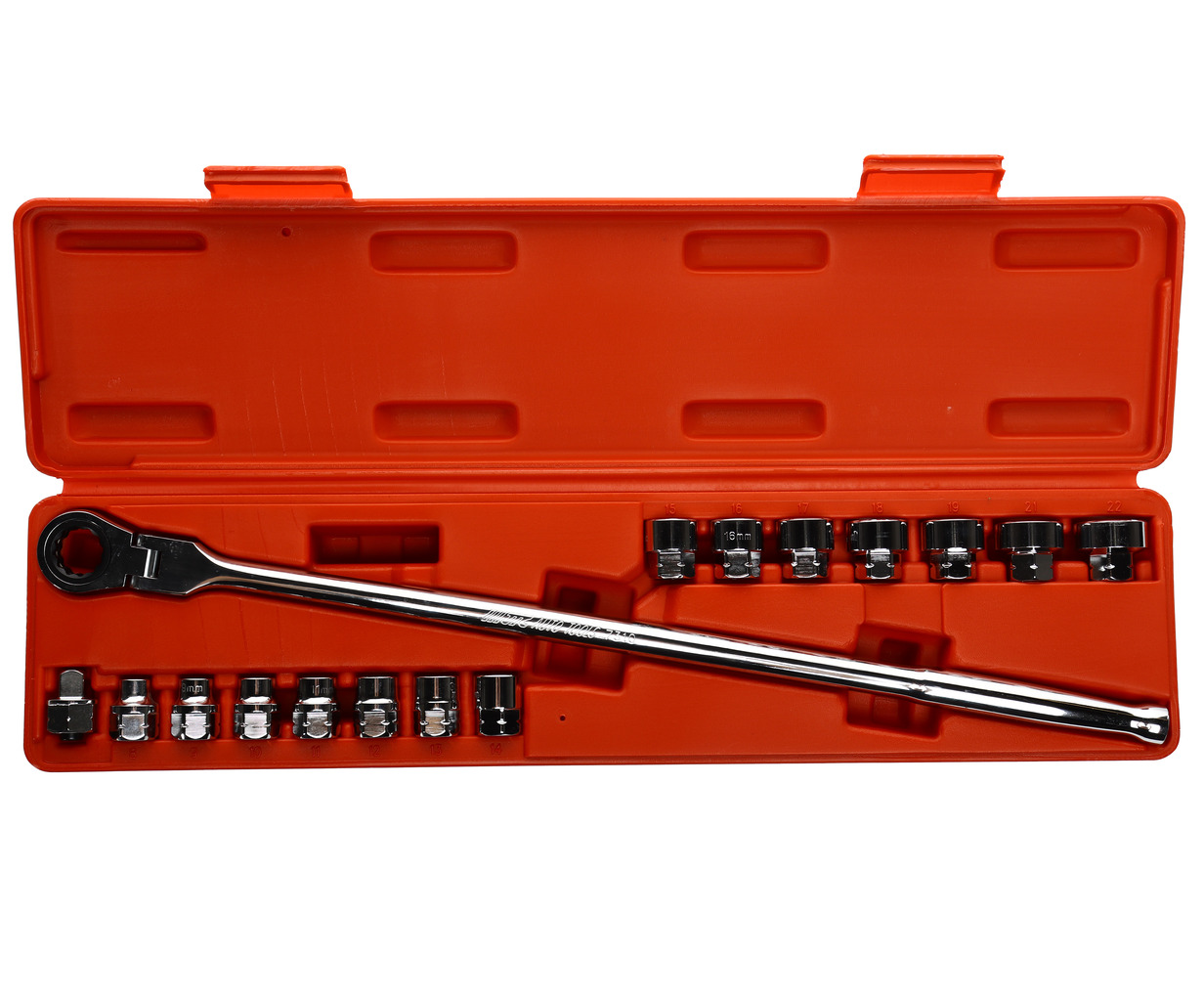• Головка с воротком (ультракороткая конструкция, 450 мм); Комплектация: 14 шт. шестигранных головок на 17 мм: 8, 9, 10, 11, 12, 13, 14, 15, 16, 17, 18, 19, 21, 22 мм; 1 адаптер H17 x 3/8" Dr; 1 раздвижной трещоточный ключ 17 мм (длина: 455 мм).