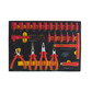 • 115 ШТ НАБОР ИЗОЛИРОВАННЫХ ИНСТРУМЕНТОВ Комплектация: Секция №1 I1044 Набор изолированных инструментов (44 предмета) Комплектация: 10 изолированных торцовых головок, 1/4": 5, 6, 7, 8, 9, 10, 11, 12, 13, 14 мм. 4 изолированные головки-биты Hex, 1/4": Н3, Н4, Н5, Н6. 1 изолированный Вороток с храповым механизмом, 1/4" х 150 мм. 1 изолированный быстроразъемный удлинитель, 1/4" х 4". 10 изолированных торцовых головок, 3/8": 8, 10, 11, 12, 13, 14, 15, 16, 17, 19 мм 3 изолированные глубокие торцовые головки, 3/8": 8, 10, 12. 7 изолированных головок-бит Torx, 3/8": Т20, Т25, Т27, Т30, Т40, Т45, Т50. 3 изолированные головки-биты Spline, 3/8": М5, М6, М8. 1 изолированный Вороток с храповым механизмом, 3/8" х 200 мм. 1 изолированный Т-образный Вороток, 3/8. 1 изолированный удлинитель, 3/8" х 4". 1 ключ разводной изолированный, 10. Секция №2 I2026 Набор изолированных инструментов (26 предметов) Комплектация: 1 изолированные боковые кусачки, 6. 1 изолированные острогубцы, 8". 1 изолированные комбинированные пассатижи, 8". 1 Клещи изолированные для зачистки проводов от изоляции, 8". 1 изолированный Вороток с храповым механизмом, 1/2" х 250 мм. 1 изолированный Т-образный Вороток, 1/2". 1 изолированный удлинитель, 1/2" х 5". 1 изолированный кабельный нож, 200 мм. 14 изолированных торцовых головок, 1/2": 10, 12, 13, 14, 15, 16, 17, 18, 19, 21, 22, 24, 27, 32 мм. 4 изолированные головки-биты Hex, 1/2": Н5, Н6, Н8, Н10. Секция №3 I3018 Набор изолированных инструментов (18 предметов) Комплектация: 8 изолированных отверток: SL2.5 x 75 мм, SL4 x 100 мм, SL5.5 X 125 мм, SL6.5 x 150 мм. PH0 х 60 мм, PH1 х 80 мм, PH2 х 100 мм, PH3 х 100 мм. 10 гайковертов: 4, 5, 6, 7, 8, 9, 10, 11, 12, 13. Секция №4 I4027 Набор изолированных инструментов (27 предметов) Комплектация: 15 изолированных рожковых ключей: 8, 9, 10, 11, 12, 13, 14, 15, 16, 17, 18, 19, 21, 22, 24. 12 изолированных накидных коленчатых ключей: 8, 10, 11, 12, 13, 14, 15, 16, 17, 18, 19, 21.