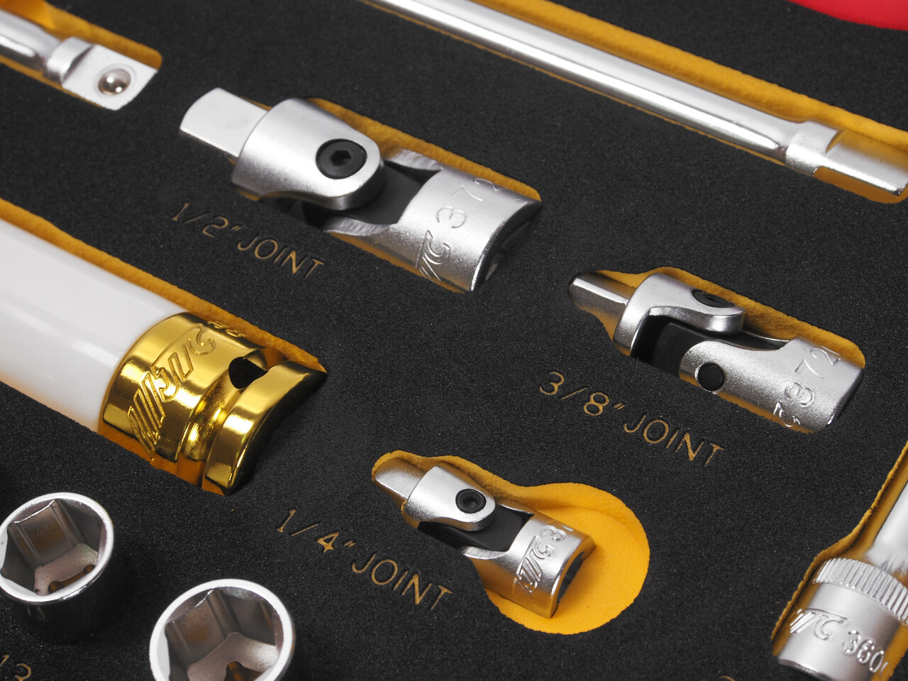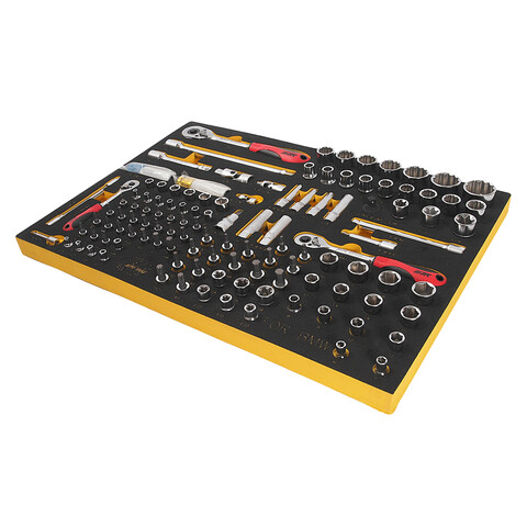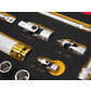 • В комплекте: Головка 1/2" Dr.х12РТ: 10-19, 21, 22, 24, 27, 30, 32 мм. Головка 3/8" Dr.х6РТ: 6-19 мм. Головка 1/4" Dr.х6РТ: 4-14 мм. Головка с насадкой 1/4" Dr. Torx: T6-T40. Головка с насадкой 1/4" Dr. Hex: H3-H8. Головка с насадкой 1/4" Dr. Phillips: PH0-3, SL4.0-6.5. Ключ трещотка: 1/4", 3/8", 1/2". Переходник карданный: 1/4", 3/8", 1/2". Удлинитель 1/2" Dr.: 5", 10". Удлинитель шарнирный 3/8" Dr.: 3", 6". Удлинитель 1/4" Dr. 2". Удлинитель гибкий 6". Ударный адаптер 1/2"(F) х 3/8"(M). Головка 1/4" Dr. Torx: E4-E8. Головка 3/8" Dr. Torx: E10-E18. Головка 1/2" Dr. Torx: E18-E24. Головка с насадкой 3/8" Dr. Hex: H3-H10. Головка с насадкой Torx: T15-T50. Головка с насадкой 1/2" Dr. Torx: T55. Головка свечная (магнитная) 3/8" Dr.: 14 мм., 16 мм. Головка глубокая 3/8" Dr. Torx: E8-E14. Набор головок ударных для литых дисков: 17, 19 мм. Общее количество предметов: 119 шт.