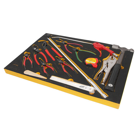 • В комплекте: Пистолет продувочный 280 мм. Вороток с шарниром 24". Пассатижи 7". Съемник стопорных колец: SS, HS. Бокорезы 6". Рулетка 5 м. Длинногубцы 6". Молоток рихтовочный 1-1/2р(240z.). Клещи специальные 8". Съемник декоративных панелей остроконечный. Клещи с фиксатором 10". Съемник декоративных панелей. Клещи переставные 10". Общее количество предметов: 14 шт.