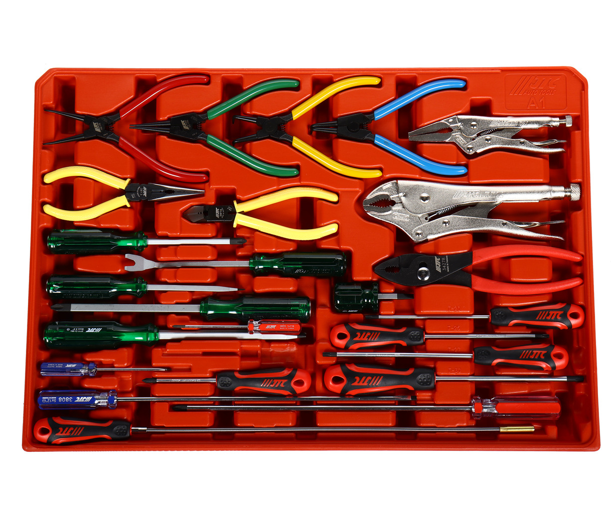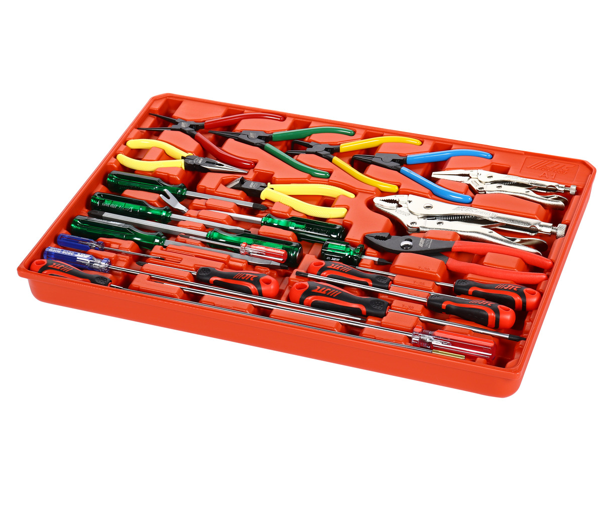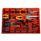 • 4 шт. съемник для стопорных колец: SS175, HB175, SB175, SS175 2 шт. плоскогубцы с фиксатором: 10WR, 6LN 1 шт. тонкогубцы 6" 1 шт. кусачки 6" 1 шт. плоскогубцы с скользящим соединением 8" 1 шт. съемник обивки двери 4 шт. сквозная отвертка: 6.5x100⊕ϴ, 8.0x150⊕ϴ 1 шт. отвертка: PH1x75⊕ 4 шт. отвертка: 3.0x75⊕ϴ, 5.0x300ϴ, PH2x300 4 шт. отвертка TORX: T20, T25, T27, T30 1 шт. двухсторонняя отвертка 1-1/2" 1 шт. гибкий магнитный стержень 1 шт. ложемент 575 x 395 мм