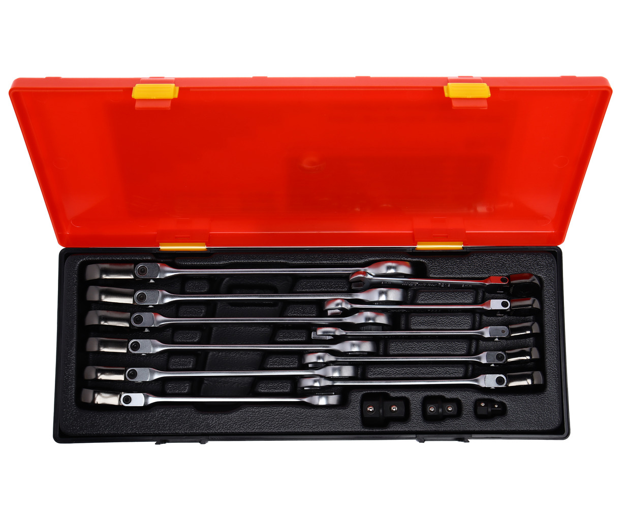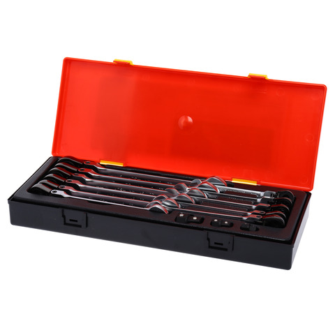 Набор комбинированных трещоточных ключей JTC-K6146 представляет собой надежный инструмент для бытового использования, который включает 14 ключей размером от 8 до 19 мм. Эти рожковые и накидные ключи изготовлены из прочной стали и имеют хромированное покрытие, что обеспечивает долговечность и защиту от коррозии. Наличие трещоточного механизма и подвижной головки позволяет удобно работать в труднодоступных местах, обеспечивая плавное и быстрое переключение. Набор поставляется в удобном кейсе, что облегчает хранение и транспортировку. Прямой дизайн ключей способствует комфортному захвату и точному применению усилия.