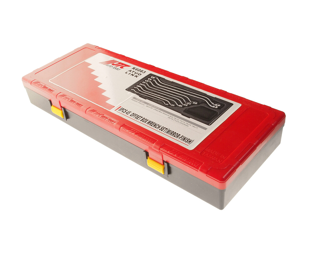 • В комплекте: Артикулы JTC-PR0809-PR2224: ключ накидной 45°: 8х9, 10х12, 11х13, 14х15, 16х17, 18х19, 21х23, 22х24 мм. - 8 шт.