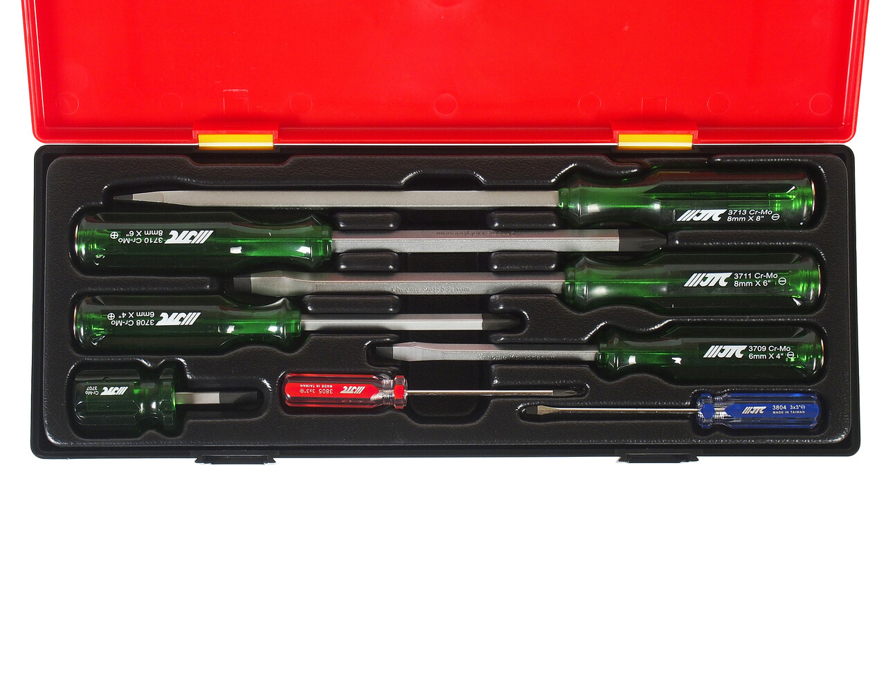 JTC-3708, JTC-3709, JTC-3710, JTC-3711, JTC-3713. Отвертки со сквозным стержнем: 4"x 6мм, SL ; 6"x 8мм,SL ; 8"x 8мм,SL; 4"x PH2; 6"x PH3. - всего 5 шт.