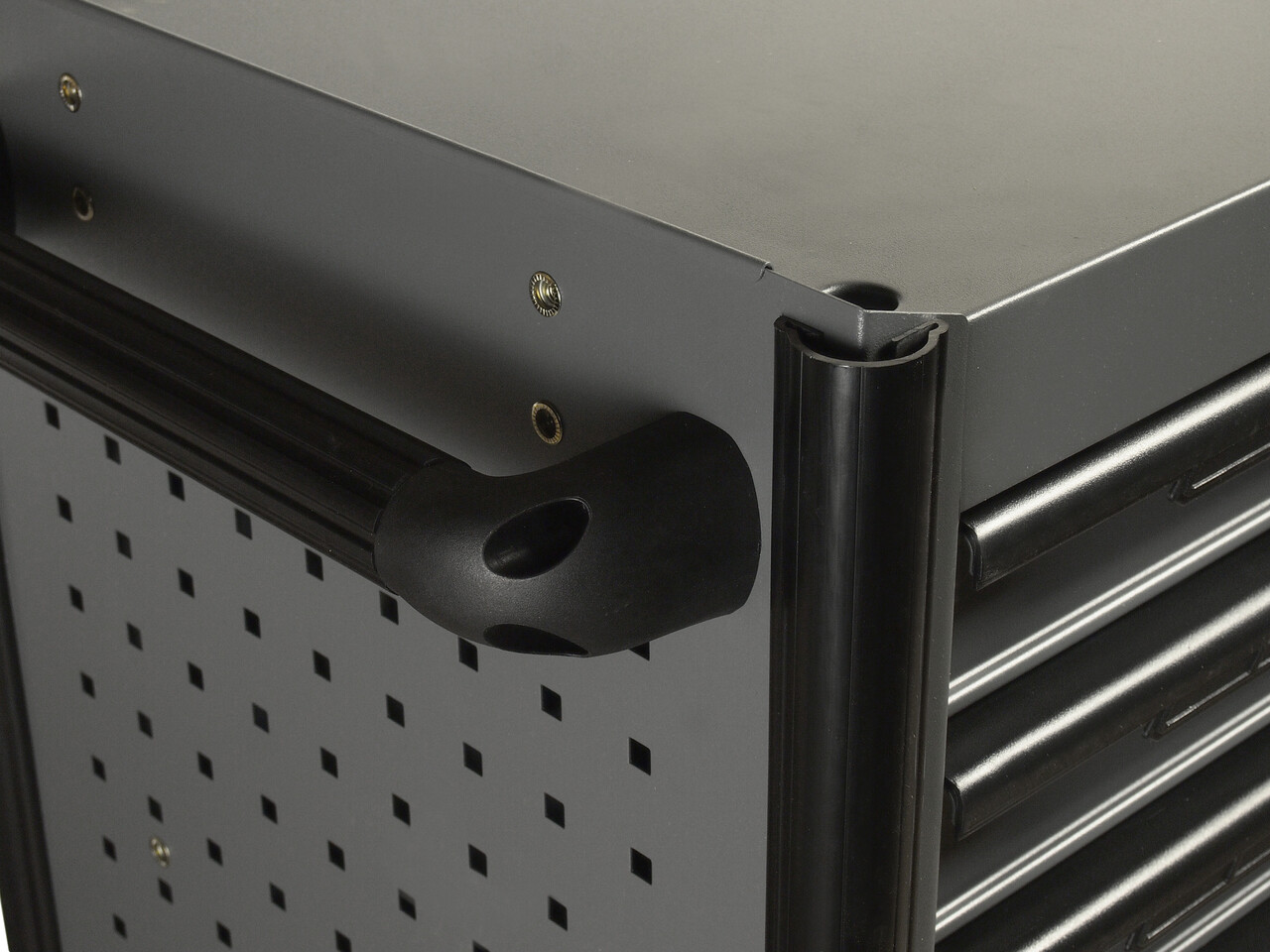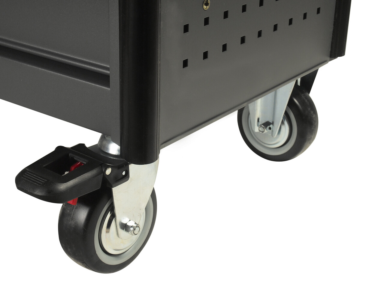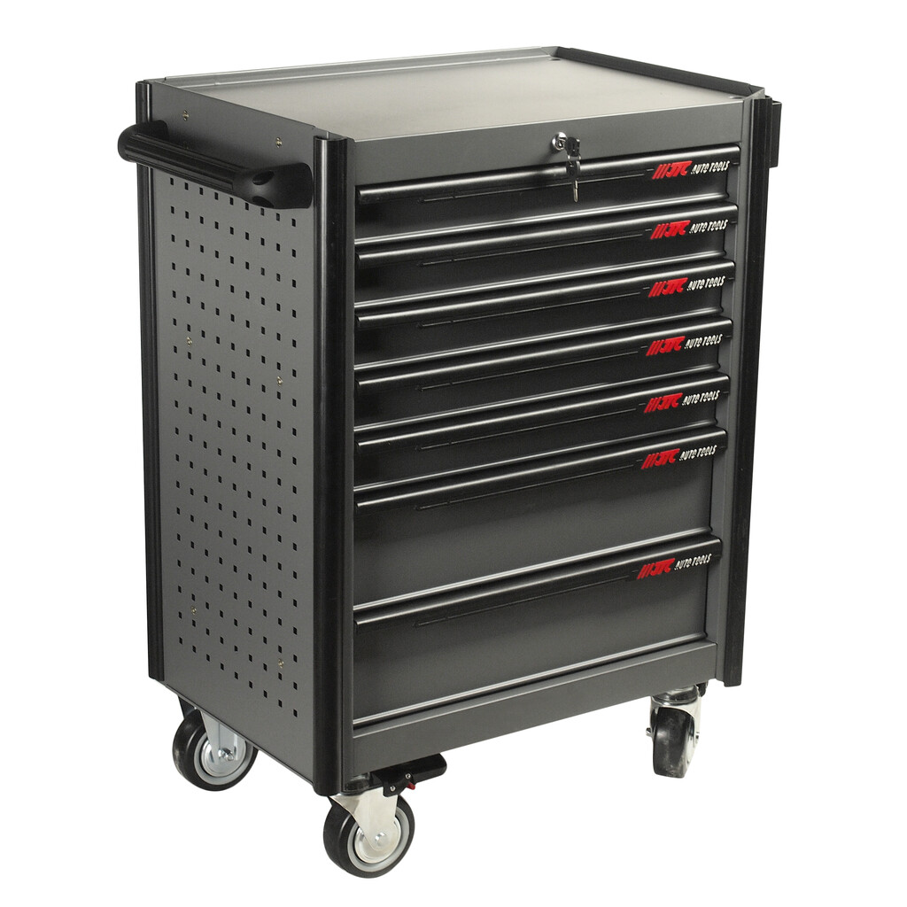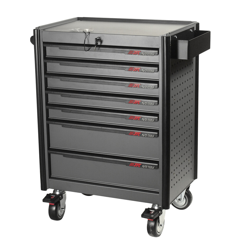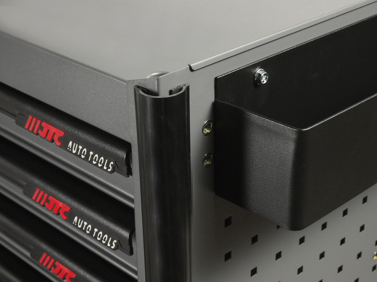 Перфорированные боковые стенки с квадратными отверстиями предоставляют возможность разместить дополнительные аксессуары для хранения инструментов. Применяется с серией подвесных приспособлений JTC- 3218.