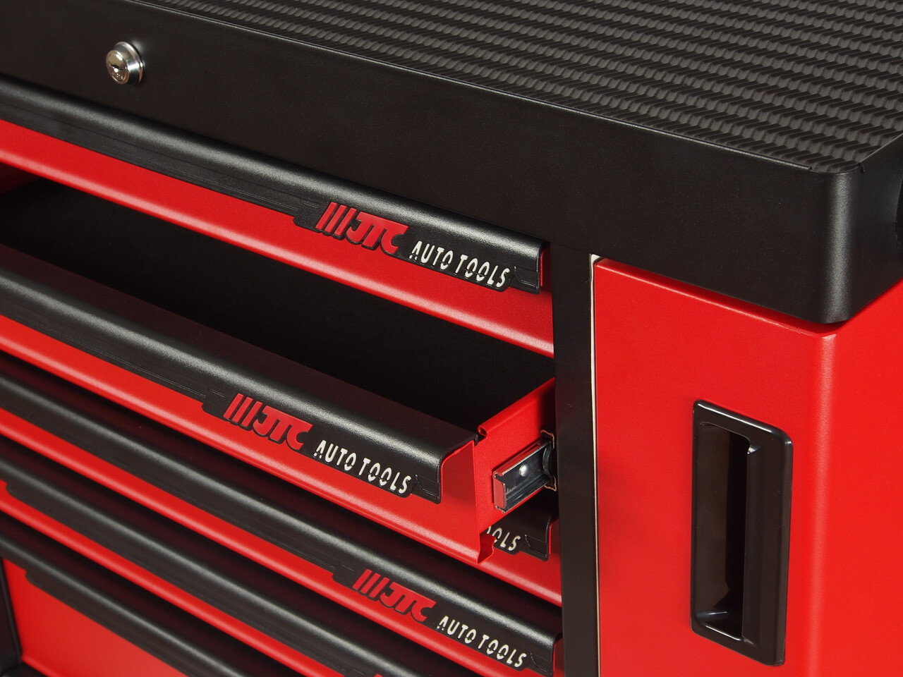 Перфорированные внутренние стенки боковых ящиков с квадратными отверстиями предоставляют возможность разместить дополнительные аксессуары для хранения инструментов. Применяется с серией подвесных приспособлений JTC-3218.