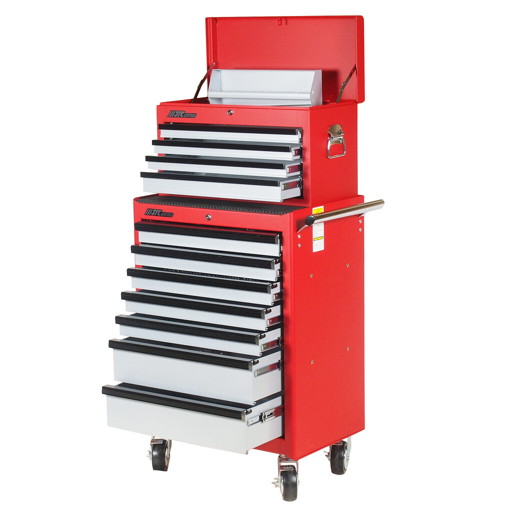 7 секций: пять плоских (580х377х59 мм.) и два глубоких (580x377x138 мм.) выдвижных ящика обеспечивают возможность размещения большого количества рабочего инструмента.