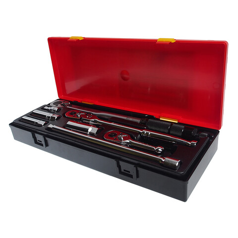 • Набор головок для свечей зажигания с динамическим ключ¸м 3/8 (в кейсе) 8 предметов. Комплектация: 6902 — 1 ключ динамометрический 3/8" 19-110 Н·м 355 мм, с черной металлической рукояткой. 3812 — 1 ключ-трещотка 3/8" Dr, 72 зуба. 3017 — 1 ключ-трещотка короткий, 3/8" Dr, 72 зуба. 3619, 3622 — 2 удлинителя шарнирных, 3/8" Dr. - 1 3/4", 10". 4730 — 1 головка свечная 3/8" 14 мм 12-ти гранная с пружинным фиксатором. 4812, 4813 — 2 свечные головки с пружинным фиксатором, 3/8" 16 мм и 3/8" Dr. х 21 мм.