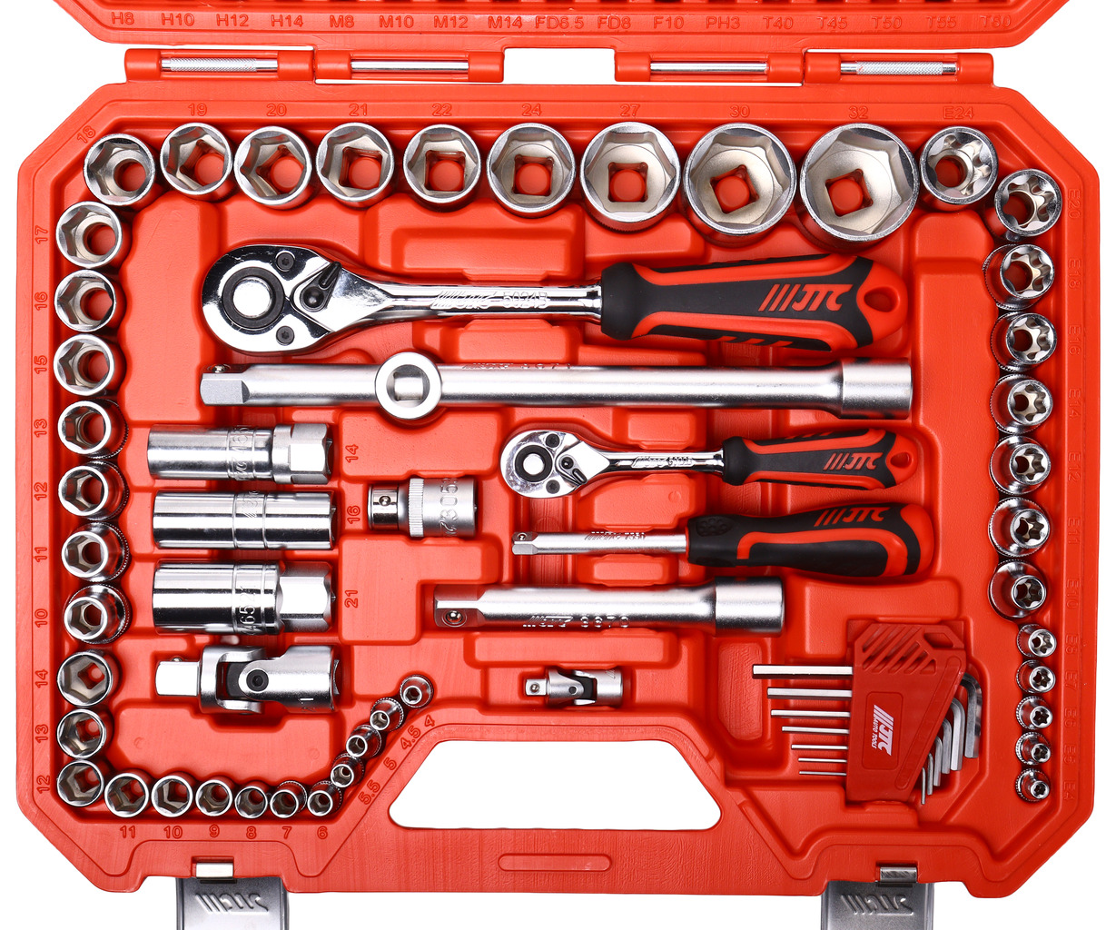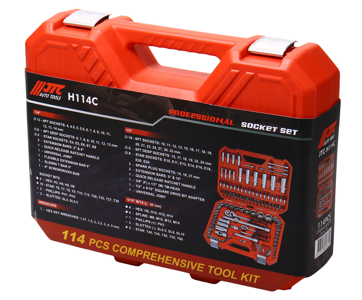 Набор инструментов 114 предметов слесарно-монтажный 1/2",1/4" 6-ти гран.в кейсе JTC