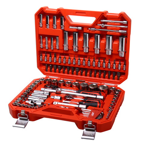 • 13 шт. Головки 1/4" 6-гран.: 4, 4.5, 5, 5.5, 6, 7, 8, 9, 10, 11, 12, 13, 14 мм. 8 шт. Головки 1/4" 6-гран. глубокие: 6, 7, 8, 9, 10, 11, 12, 13 мм. 16 шт. Головки 1/2" 6-гран.: 10, 11, 12, 13, 15, 16, 17, 18, 19, 20, 21, 22, 24, 27, 30, 32 мм. 6 шт. Головки 1/2" 6-гран. глубокие: 15, 17, 18, 19, 22, 24 мм. 5 шт. Головки 1/4" под звезду (E-Torx): E4, E5, E6, E7, E8. 8 шт. Головки 1/2" под звезду (E-Torx): E10, E11, E12, E14, E16, E18, E20, E24. 18 шт. Биты 1/4" x 25 мм: 4 шт.: H3, H4, H5, H6. 10 шт. Torx: T6, T7, T8, T10, T15, T20, T25, T27, T30. 2 шт.: PH1, PH2. 2 шт.: SL4, SL5.5. 2 шт. Удлинитель 1/4": 2" (50 мм) и 4" (100 мм). 1 шт. трещотка 1/4" быстросъемная. 1 шт. Карданный шарнир 1/4". 1 шт. Гибкий удлинитель 1/4" (150 мм). 1 шт. вороток Т-образный 1/4" (125 мм). 1 шт. вороток-отвертка 1/4" (150 мм). 3 шт. Свечные головки 1/2": 14, 16, 21 мм. 2 шт. Удлинитель 1/2": (125 мм) и 10" (250 мм). 1 шт. трещотка 1/2", 72 зуба быстросъемная. 1 шт. Адаптер 3/8" (F) x 1/2" (M). 1 шт. Адаптер бит 1/2" x 5/16" SQ. 1 шт. Карданный шарнир 1/2". 17 шт. Биты 5/16" x 30 мм: 4 шт.: H8, H10, H12, H14. 4 шт. Spline: M8, M10, M12, M14. 1 шт.: PH3. 3 шт.: SL6.5, SL8, SL10. 5 шт. Torx: T40, T45, T50, T55, T60. 7 шт. Г-образный ключ HEX: H1.27, H1.5, H2, H2.5, H3, H4, H5 мм.
