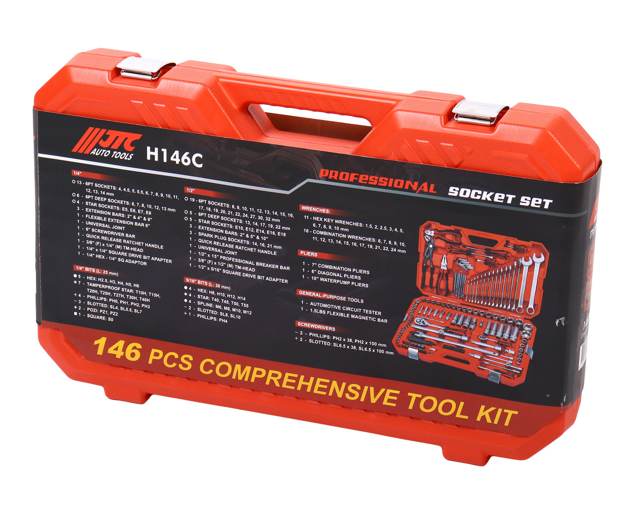Набор инструментов 146 предметов слесарно-монтажный 1/2",1/4" 6-ти гран.в кейсе JTC