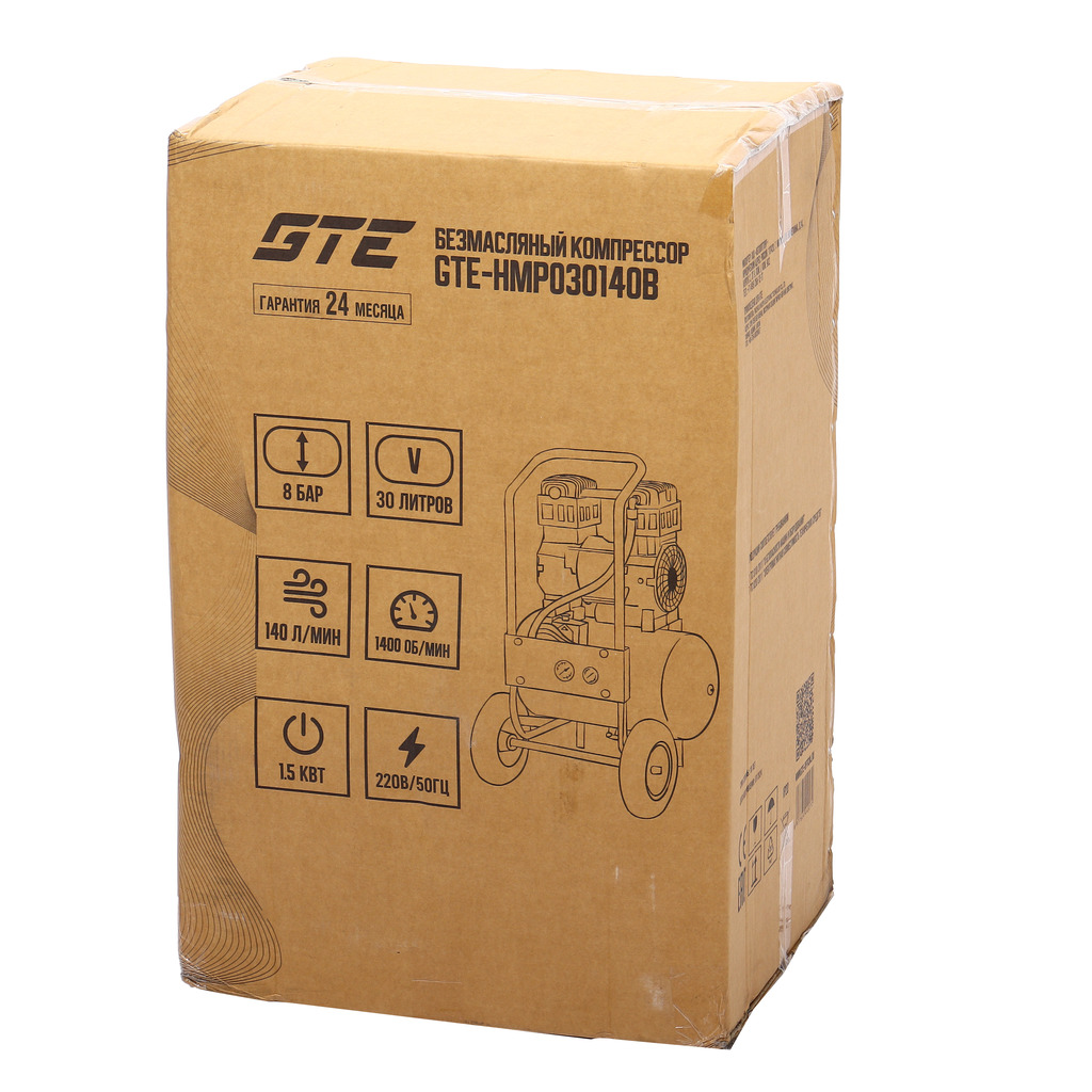 Компрессор пневматический 220В 1.5кВт 8атм. 140л/мин. ресивер-30л поршневой безмасляный GTE