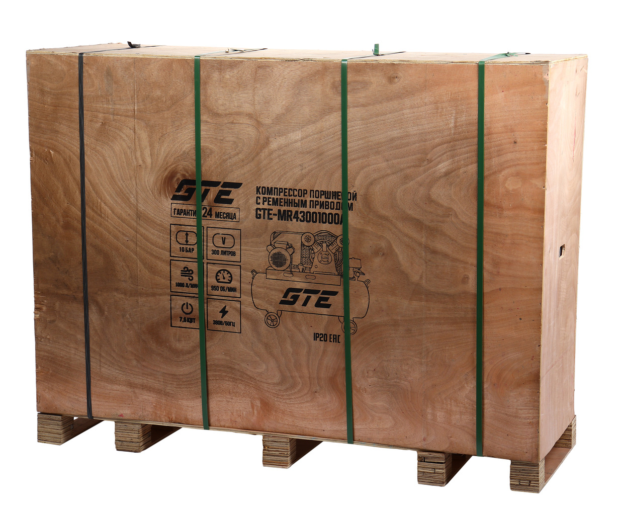 Компрессор пневматический 380В 7.5кВт 10атм. 1000л/мин. ресивер-300л поршневой ременной GTE