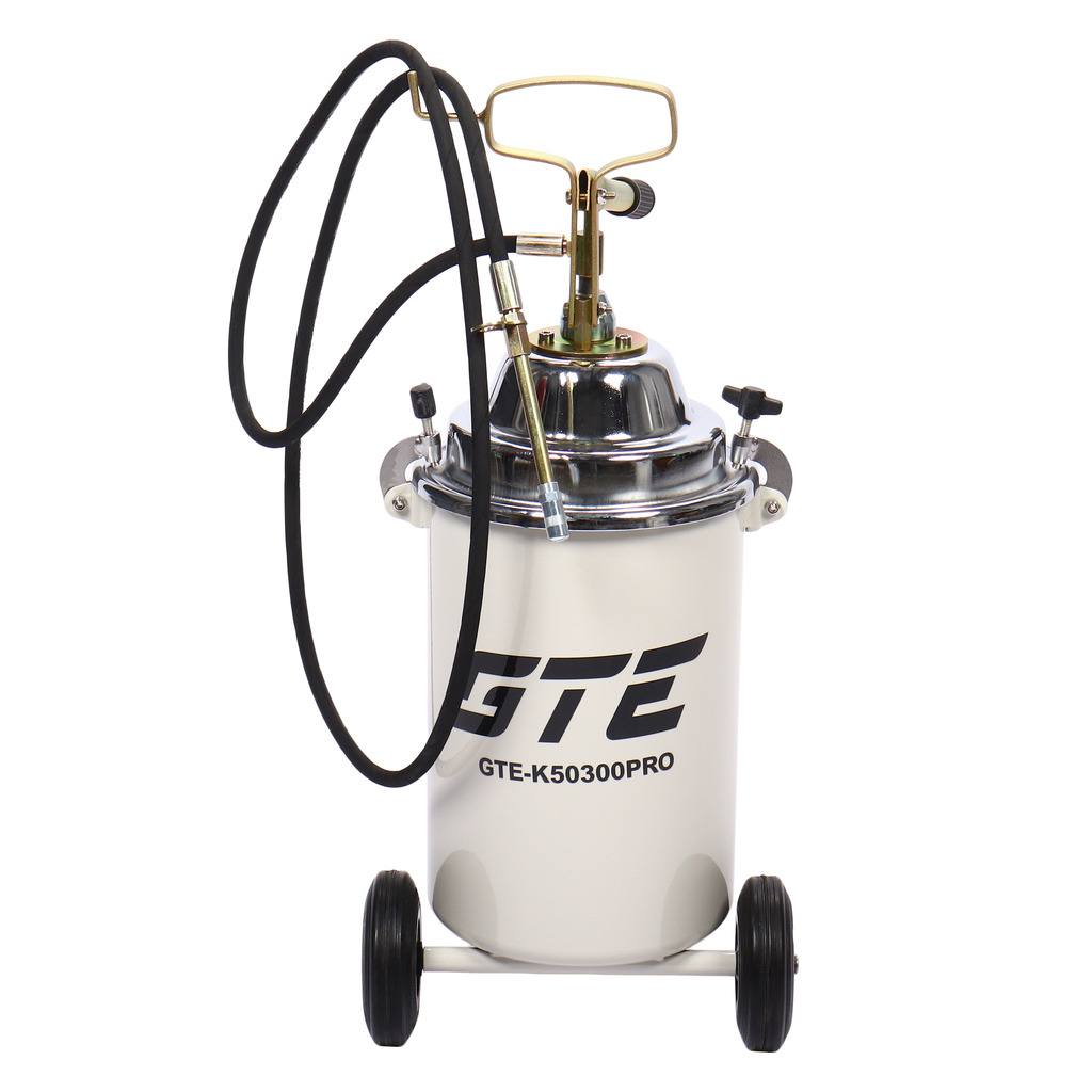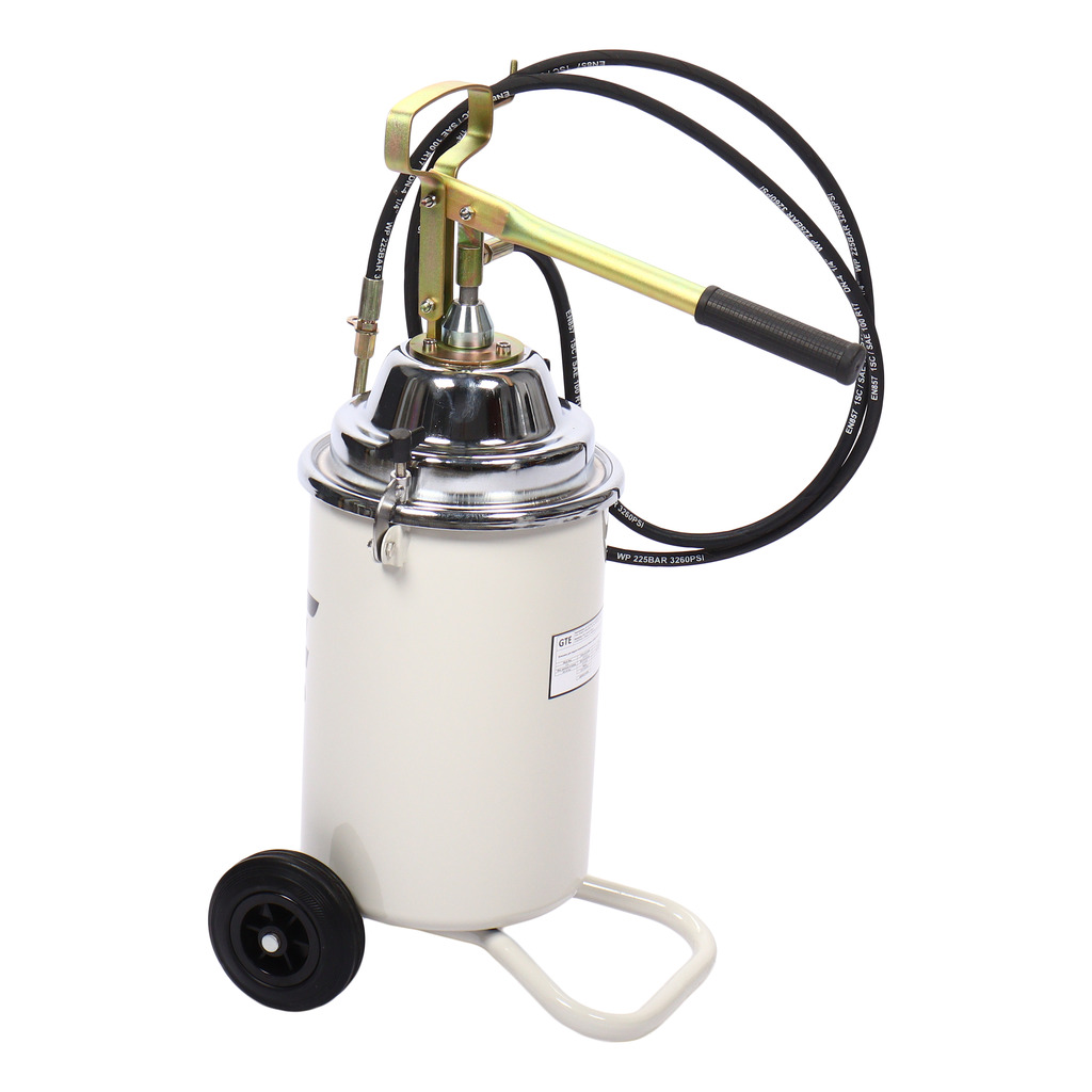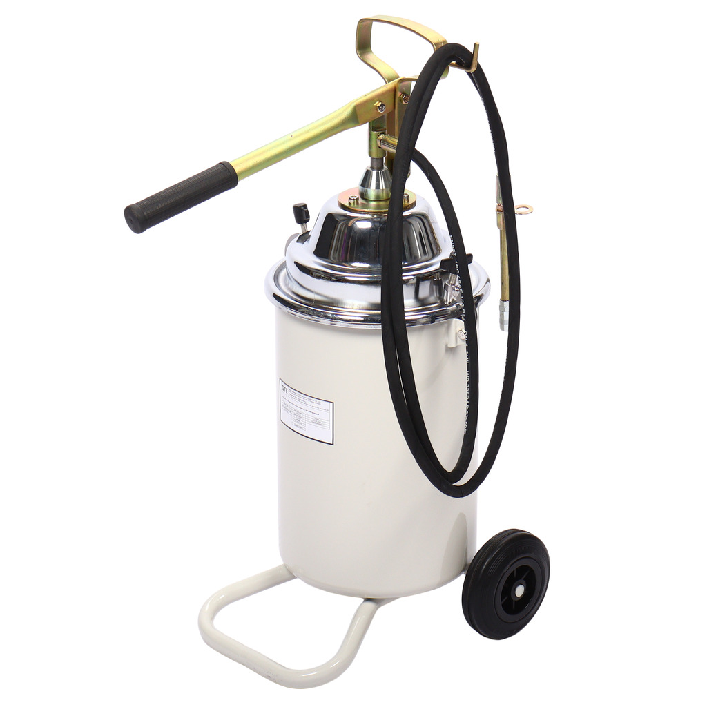 Установка на колесах для подачи консистентных смазок (солидолонагнетатель) с ручным приводом. Позволяет быстро смазать под высоким давлением узлы любого автомобиля или механизма.