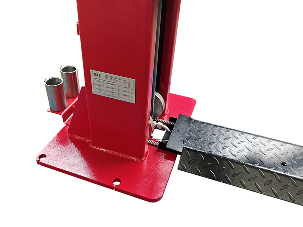 Двухстоечный подъемник с механическим спуском с 1 колонны GTE-H104 с нижней синхронизацией предназначен для обслуживания транспортных средств малой и средней весовых категорий общей массой до 4 тонн, используется в автомобильных сервисах и специализированных мастерских.