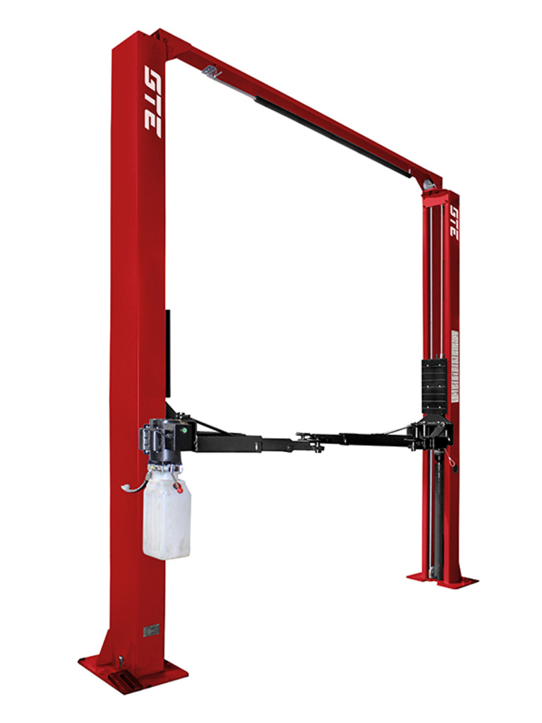 Двухстоечный подъемник с ручным двойным спуском модель GTE-B200 с верхней синхронизацией предназначен для обслуживания транспортных средств малой и средней весовых категорий общей массой до 4 тонн, используется в автомобильных сервисах и специализированных мастерских.