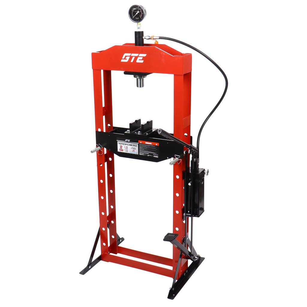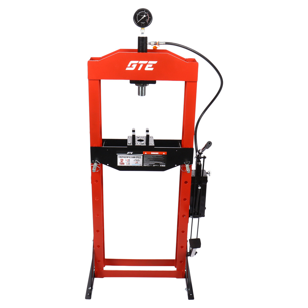 Гидравлический напольный пресс GTE с ручным и ножным приводом GTE-HPN13012 обеспечивает усилие прижима 12 тонн.
