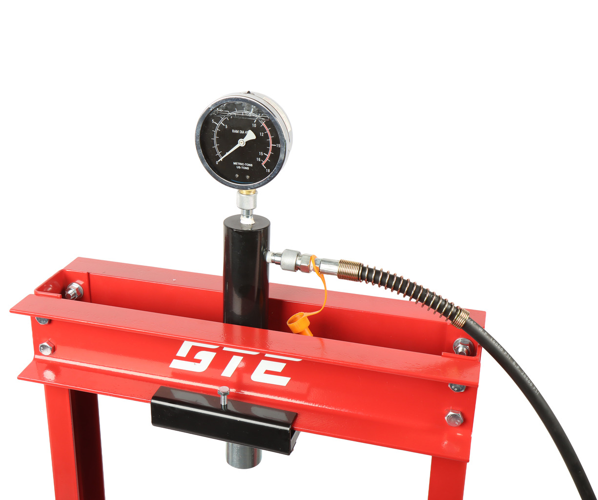 Гидравлический напольный пресс GTE с ручным приводом GTE-HPR13012S обеспечивает усилие прижима 12 тонн. Используется в автосервисах, СТО и производстве для запрессовки деталей различных размеров, выпрессовки втулок, снятия и установки подшипников, гибки металла.
