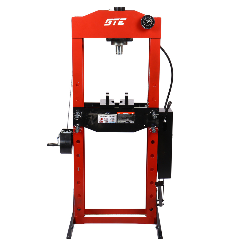 Гидравлический напольный пресс GTE с ручным и ножным приводом GTE-HPN13030 обеспечивает усилие прижима 30 тонн.
