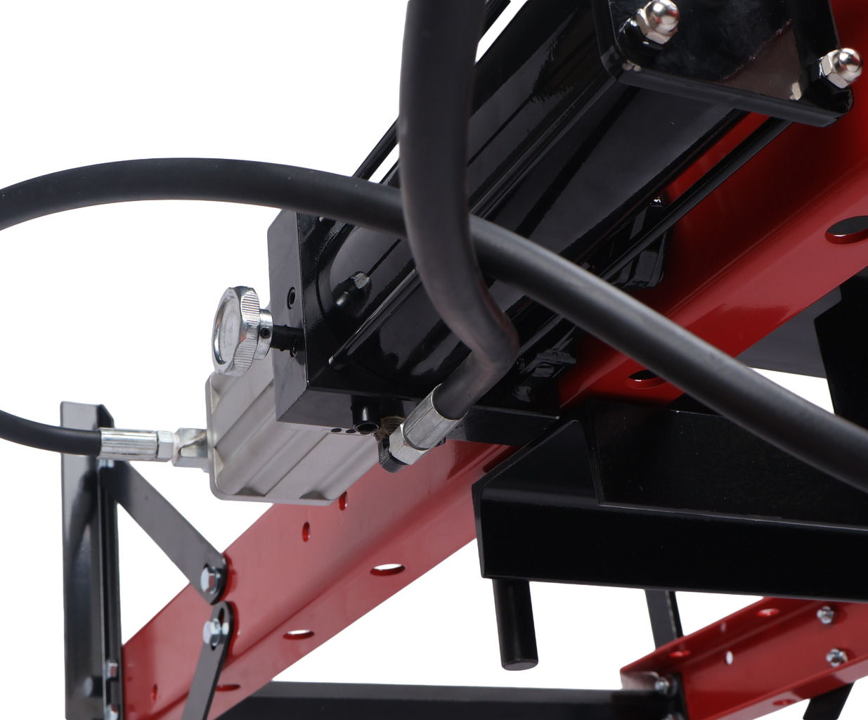 Насос и цилиндр пресса соединены прочным шлангом.