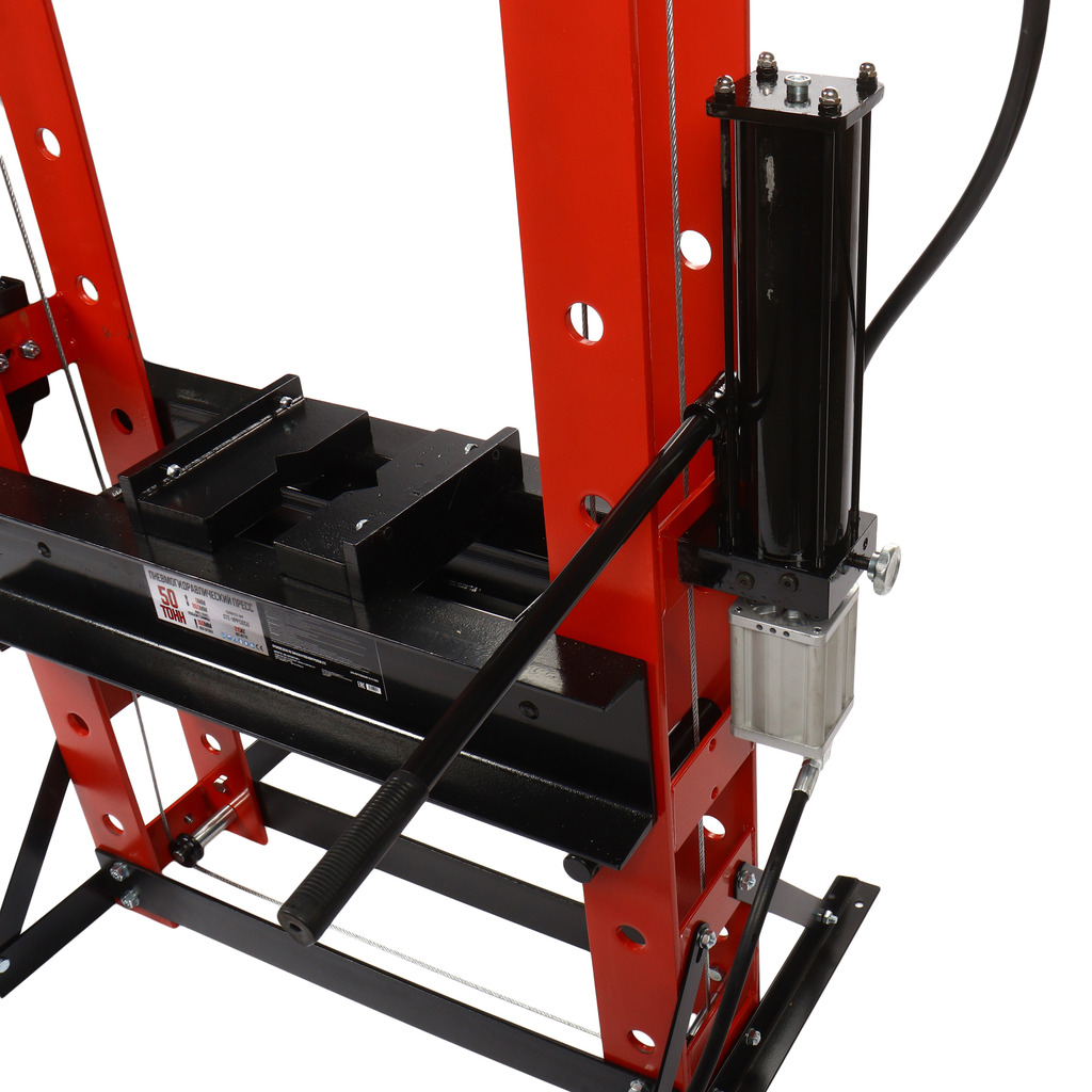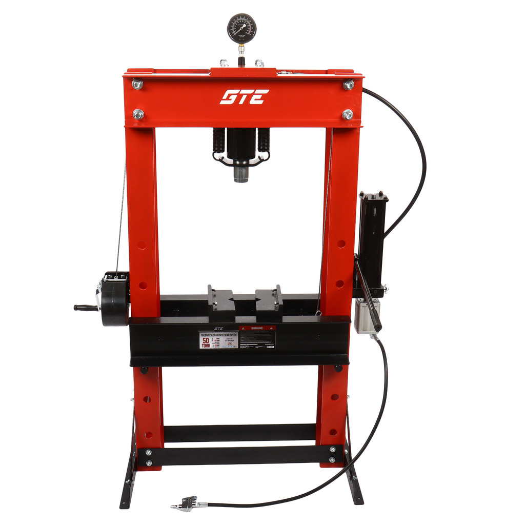 Профессиональный пневмогидравлический пресс GTE-HPP13050 с усилием 50 тонн предназначен для выпрессовки, запрессовки и других операций с деталями в автосервисах, СТО и на промышленных объектах. Станок оснащен ручным гидравлическим приводом и пневматическим насосом, который работает от источника сжатого воздуха, ускоряя выполнение операций.