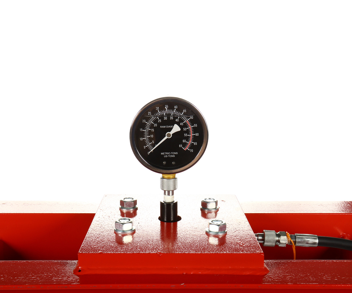Пресс снабжен виброустойчивым глицериновым манометром для контроля давления штока.