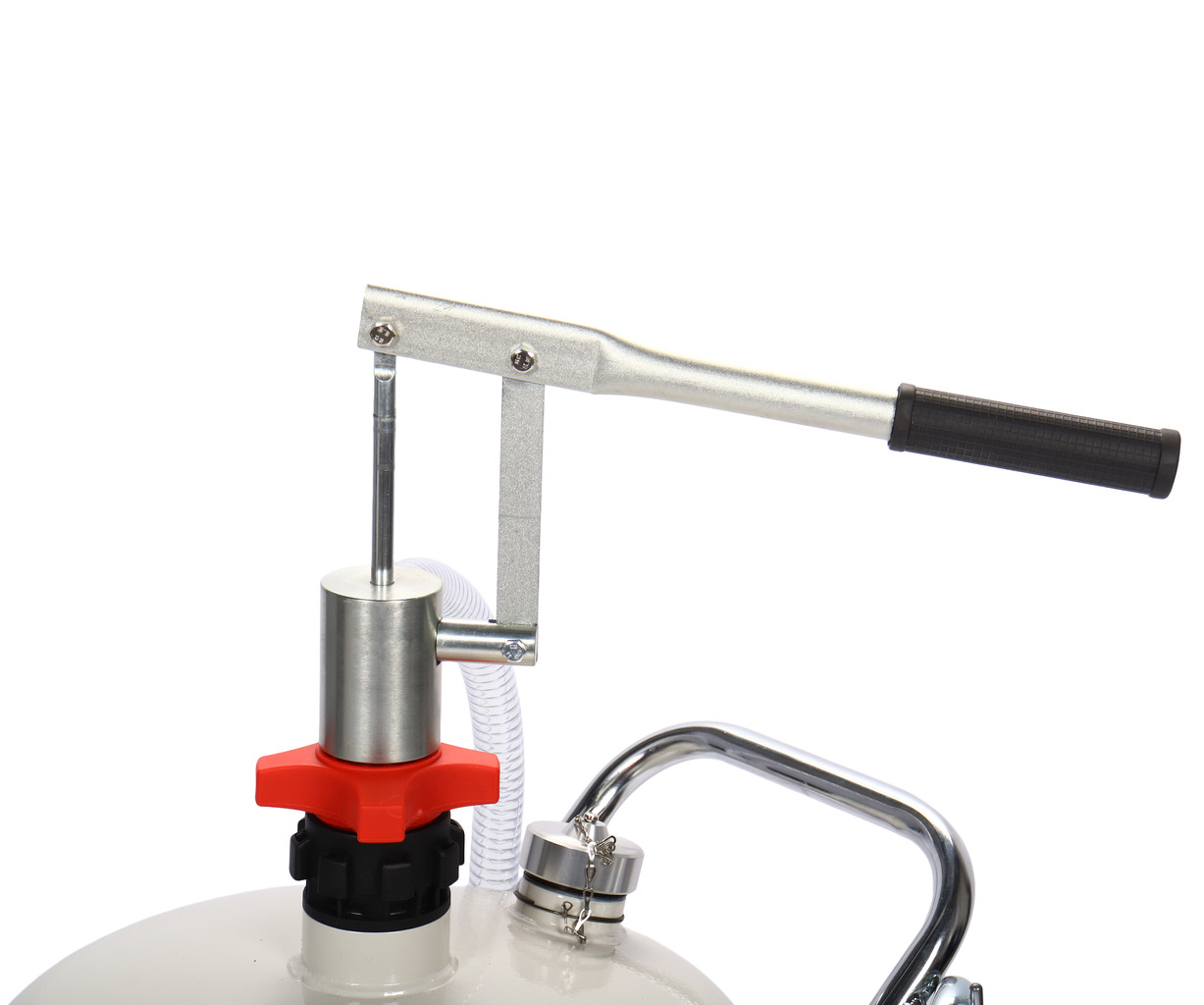 Ручной насос двойного действия, управляемый рукояткой, обеспечивает быструю подачу масел с высокой вязкостью (максимальная плотность — SAE 240).