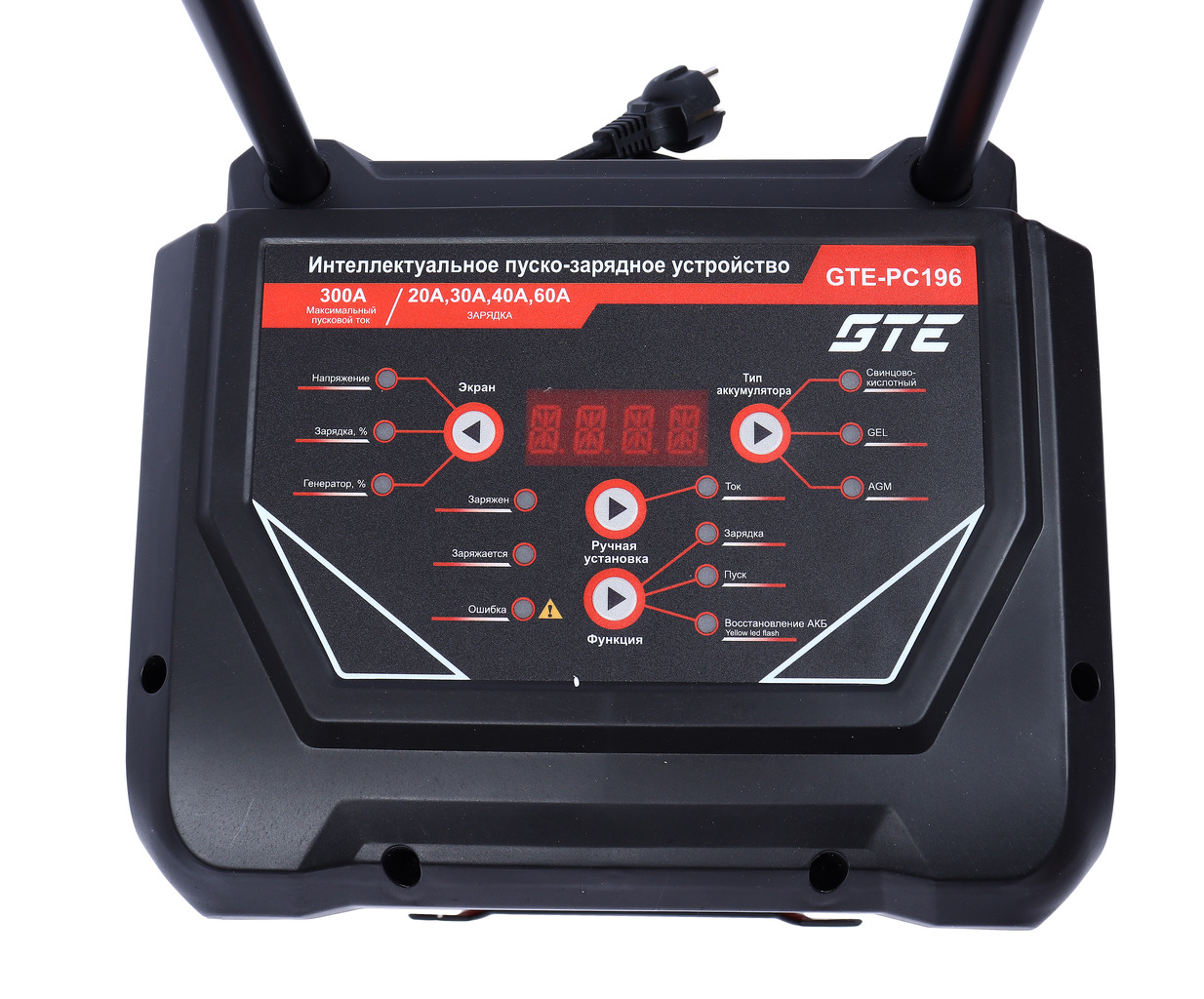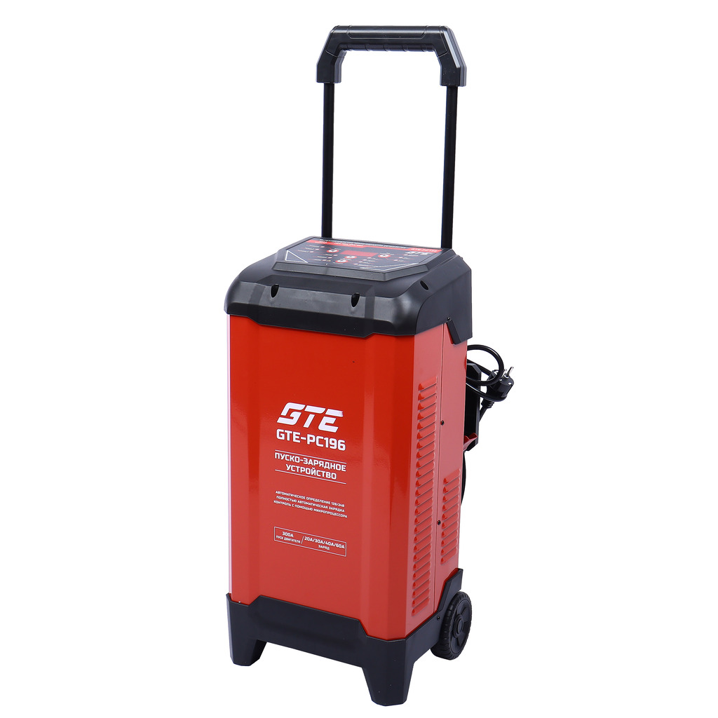 Пуско-зарядное интеллектуальное устройство GTE-PC196 предназначено для обслуживания большого спектра автомобильных аккумуляторов различных транспортных средств в автосервисах и СТО. Автомобильное ПЗУ GTE-PC196 позволяет эффективно произвести зарядку АКБ и запуск транспортных средств.