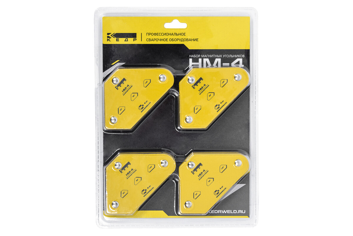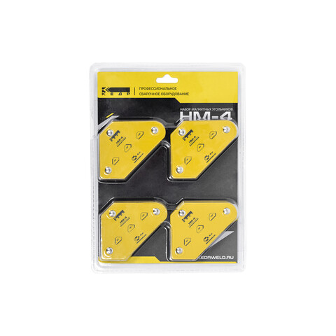 Набор магнитных угольников НМ-4 позволяет производить точное выставление углов в процессе проведения сварочных работ, монтажа стальных конструкций, используется как элемент удержания деталей. Данное приспособление дает возможность осуществлять процесс сварки одному рабочему. Может быть использован для крепления элементов в процессе резки для предотвращения падения частей конструкций.
