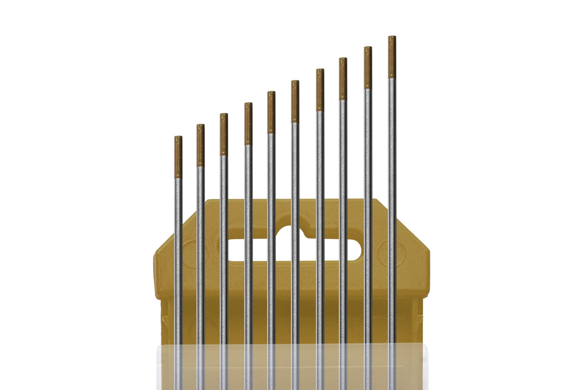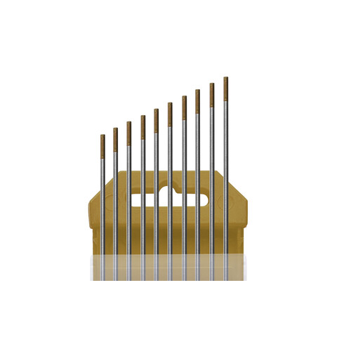 Электроды вольфрамовые WL-15, Ø 2,0 мм, цвет золотистый (цена указана за 1 электрод) из сплава вольфрама с оксидом лантана имеют очень легкий первоначальный запуск дуги, низкую склонность к прожогам, устойчивую дугу и отличную характеристику повторного зажигания дуги.