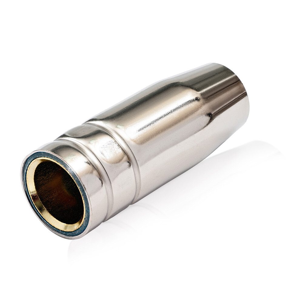 Сопло газовое (Mig-25) Ø 15 мм, коническое предназначено для фокусировки газового потока в зоне сварки, бывает различной формы, размеров и может быть выполнено как из металла, так и из керамики. Важным моментом при выборе сопла считается его внутренний выходной диаметр, он выбирается в соответствии с шириной зоны свариваемых кромок. Также сопла могут отличаться геометрией выходной части - цилиндрическое и коническое, выбор зависит от необходимой интенсивности защиты кромок изделия.