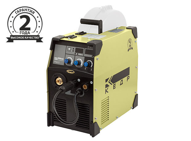 Сварочный полуавтомат КЕДР MIG-250GW, 380В трехфазный аппарат для полуавтоматической сварки стальной проволокой в среде защитного газа MIG/MAG, а также для ручной дуговой сварки штучным электродом MMA.