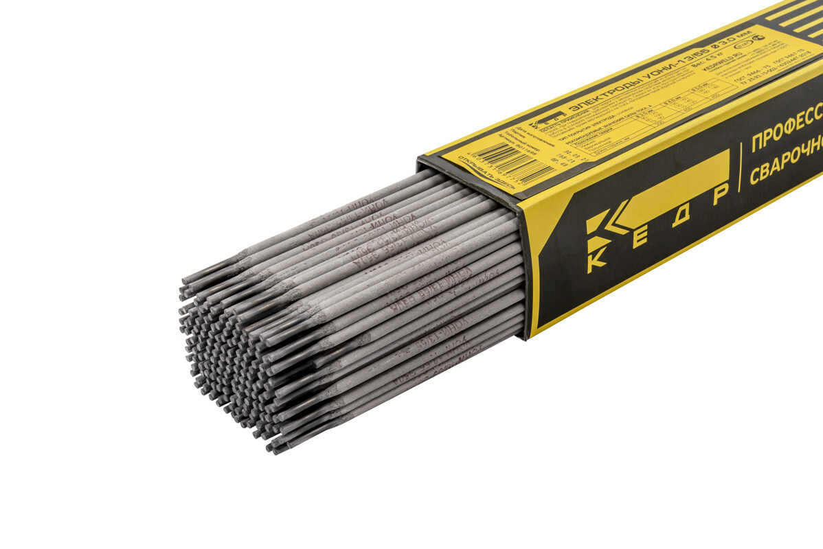 Электроды УОНИ 13/55 Ø 3,0 мм (КЕДР) пачка 4,5кг (цена указана за 1 кг.) - предназначены для сварки ответственных конструкций из углеродистых сталей, когда к металлу сварного шва предъявляются повышенные требования по пластичности и ударной вязкости. Сварка во всех пространственных положениях, кроме вертикального сверху вниз, постоянным током обратной полярности.