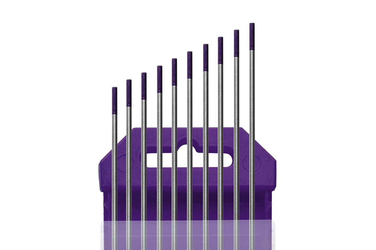 Электроды вольфрамовые WE-3, Ø 2,0 мм, цвет фиолетовый (цена указана за 1 электрод) в качестве легирования содержат оксиды нескольких редкоземельных металлов (лантана, иттрия, циркония), что обеспечивает особые преимущества в сравнении с торированными или лантанированными электродами: