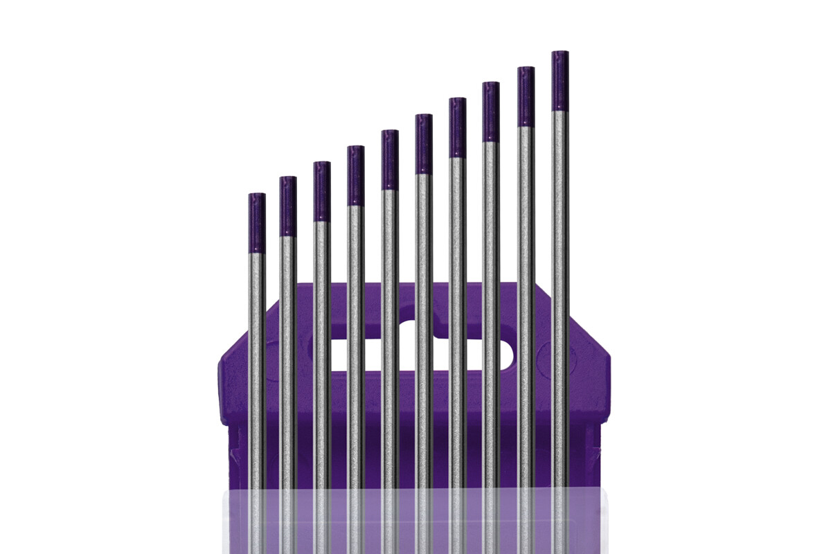 Электроды вольфрамовые WE-3, Ø 3,0 мм, цвет фиолетовый (цена указана за 1 электрод) в качестве легирования содержат оксиды нескольких редкоземельных металлов (лантана, иттрия, циркония), что обеспечивает особые преимущества в сравнении с торированными или лантанированными электродами: