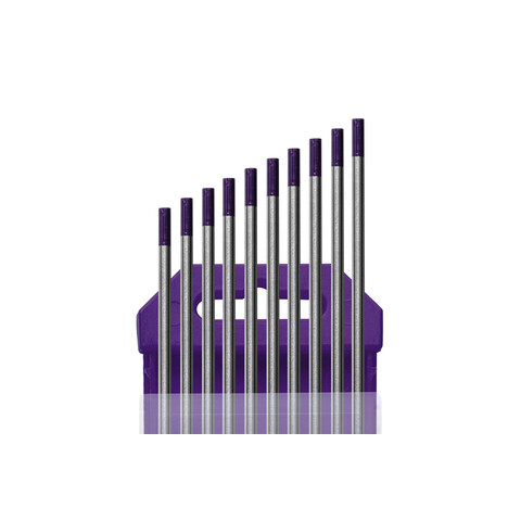 Электроды вольфрамовые WE-3, Ø 3,2 мм, цвет фиолетовый (цена указана за 1 электрод) в качестве легирования содержат оксиды нескольких редкоземельных металлов (лантана, иттрия, циркония), что обеспечивает особые преимущества в сравнении с торированными или лантанированными электродами: