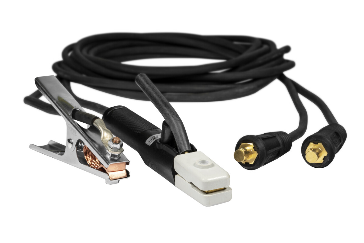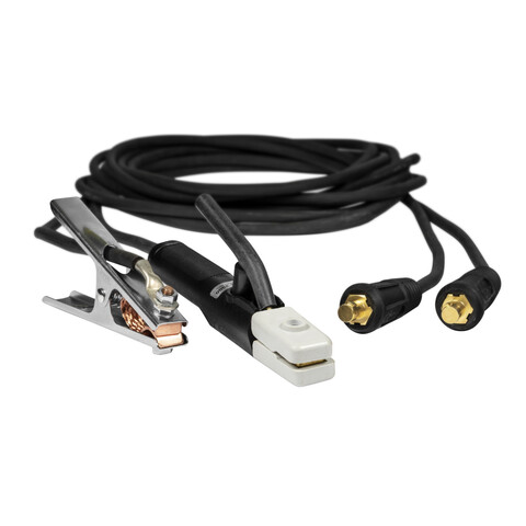 К-т кабелей 5м, на 300А, (DE-2300) 35-50/1*25 применяют для закрепления электрода и подвода к нему тока при ручной дуговой сварке.