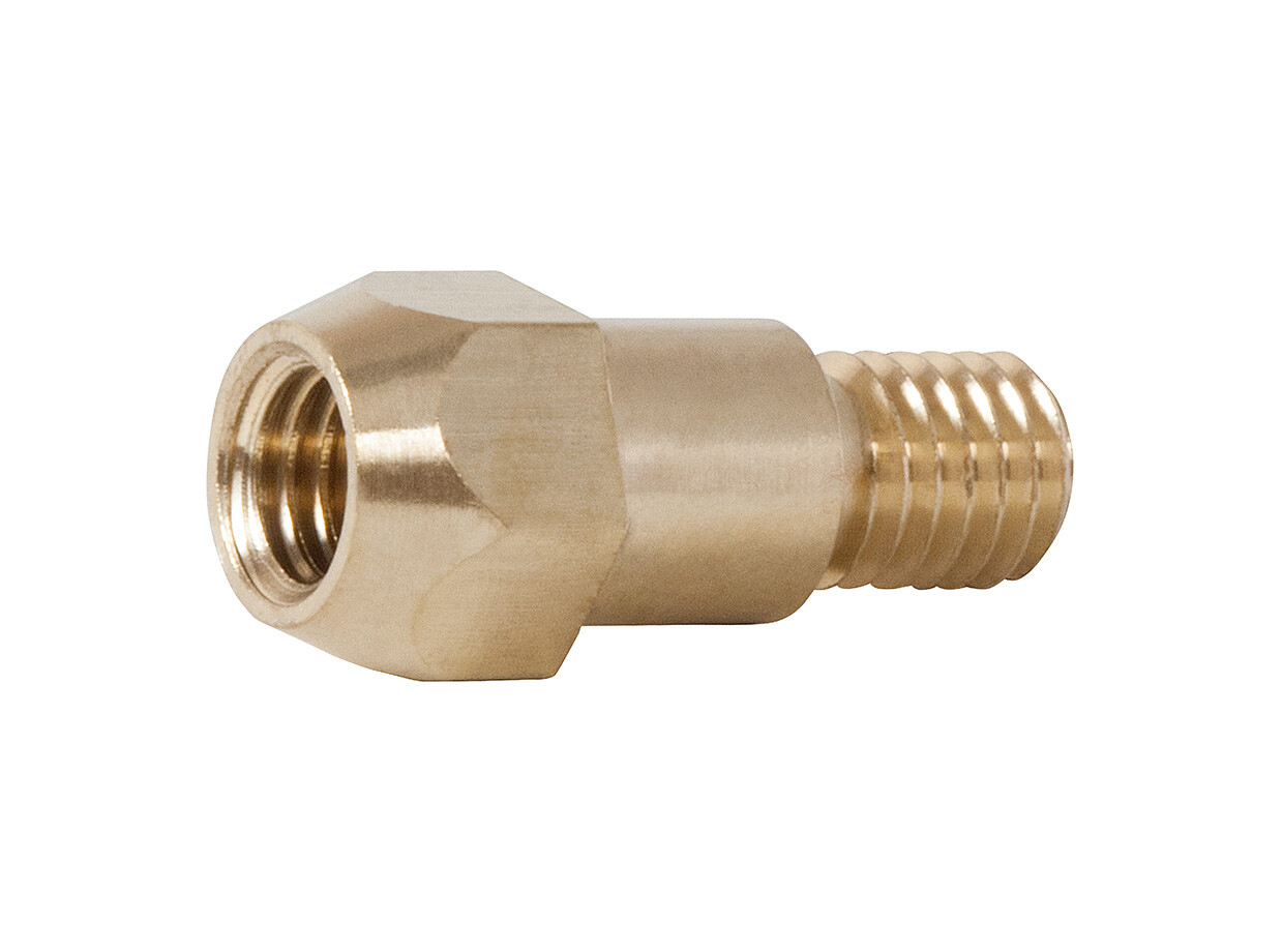 Вставка под наконечник M8/28 мм (Mig-38 Expert) - предназначена для монтажа контактного наконечника в горелку. Вставка отвечает за равномерное распределение защитного газа внутри сопла и токоподвод к наконечнику. Все вставки, как правило, выполнены из латуни, имеют симметрично расположенные отверстия по всей окружности. Вставки под наконечник отличаются в зависимости от модели горелки, имеют разные размеры и внешний вид.